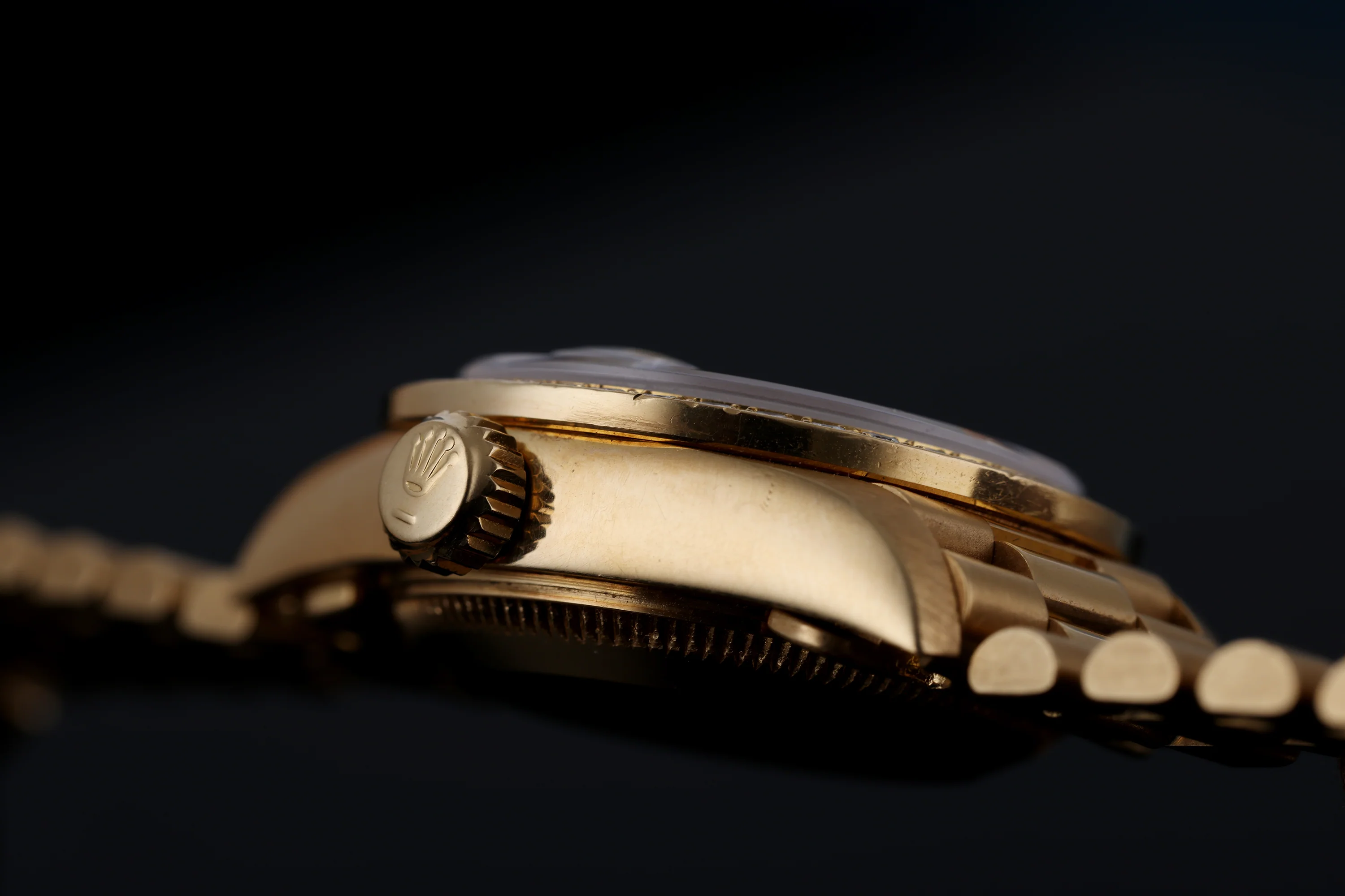 Preowned, excellent condition Factory Rolex Lady DateJust 18K Yellow Gold ladies wristwatch. Lapis lazuli diamond dial and date display at 3 o'clock. 26mm 18k yellow gold case, winder and diamond bezel. 18k yellow gold presidential bracelet and hidden deployant clasp. Sapphire crystal glass, automatic movement and waterproof up to 100m. The watch comes with an original Rolex box. This watch has a serial: N60XXXX and was produced in 1991. We guarantee that this watch has been tested thoroughly for time accuracy, functionality and has been serviced to the highest standards according to the manufacturers specification. We have performed a very precise condition check to determine the level of refurbishment required to meet our high standards of quality. This watch has been checked against technical records to guarantee authenticity and clean history.