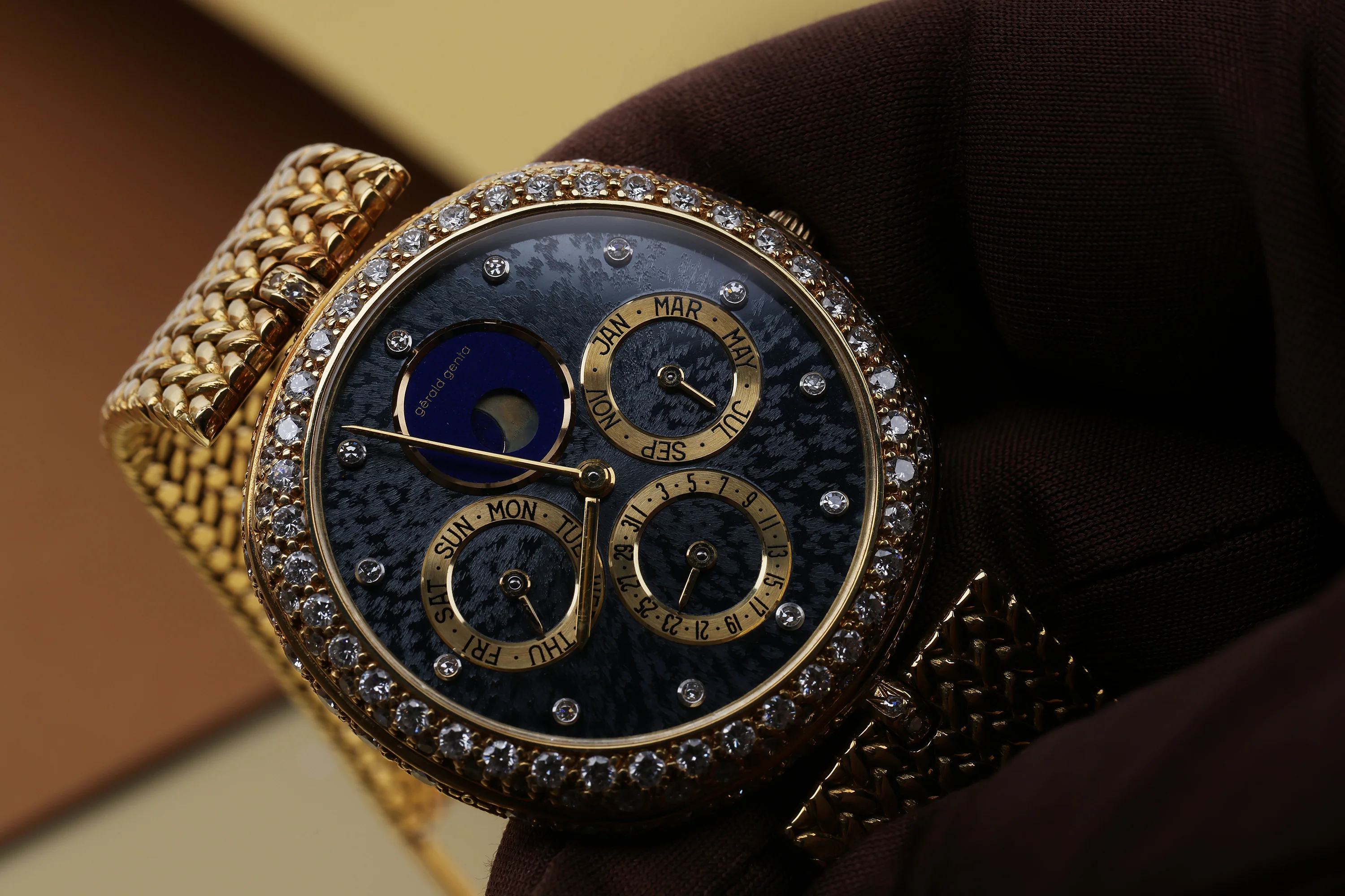 Gérald Genta Perpetual Calendar | REF. G9170.4 | Lapis Lazuli & Anthracite | 18k Yellow Gold | Diamond Dial & Bezel